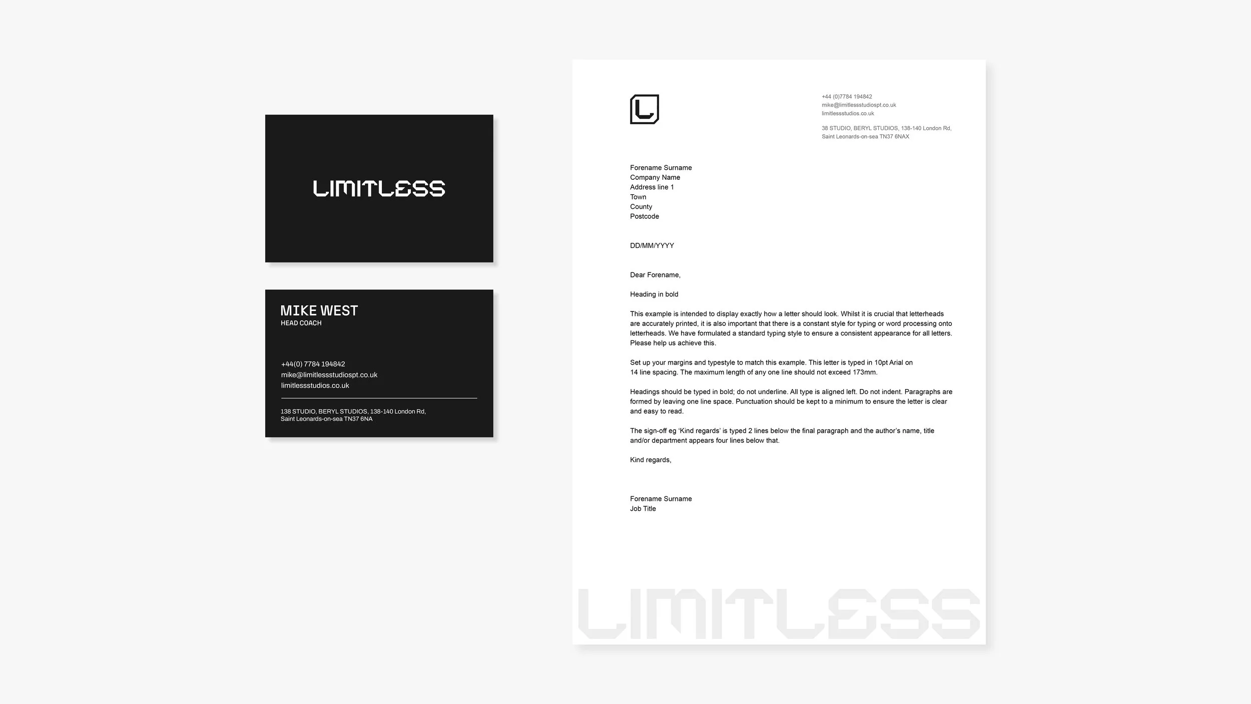The logo, boasting custom lettering with a commanding presence and sharp contours, effectively conveys the essence of Limitless Studios: originality and peak performance. This visual identity is further enhanced by a distinctive colour palette and dynamic layouts, utilizing strong typography and visual elements to encapsulate the studio's ethos and energy.